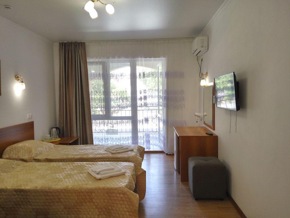| Мебель, оборудование: | двуспальная/раздельные кровати, необходимая мебель, холодильник, телевизор, кондиционер, балкон |