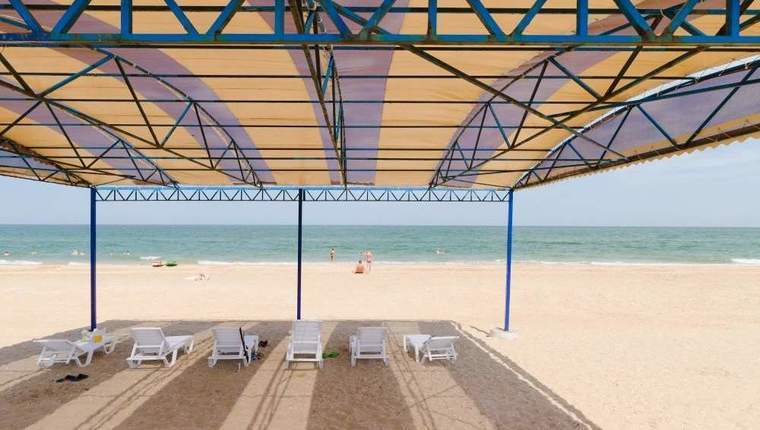 - собственный песчаный пляж длиной 10 км, оборудованный зонтами, навесом и шезлонгами - 5 минут ходьбы