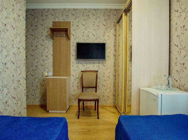 Небольшое здание отеля разместилось на благоустроенной закрытой территории. Гостей ожидают просторные номера категории Стандарт, Студио, Семейный, Люкс и вместительные четырехместные апартаменты. Во всех номерах помимо удобного мебельного гарнитура, установлена сплит-система, есть сейф, телевизор, собственный санузел с ванной или душевой кабиной, в апартаментах и семейных номерах оборудованный кухонный уголок.