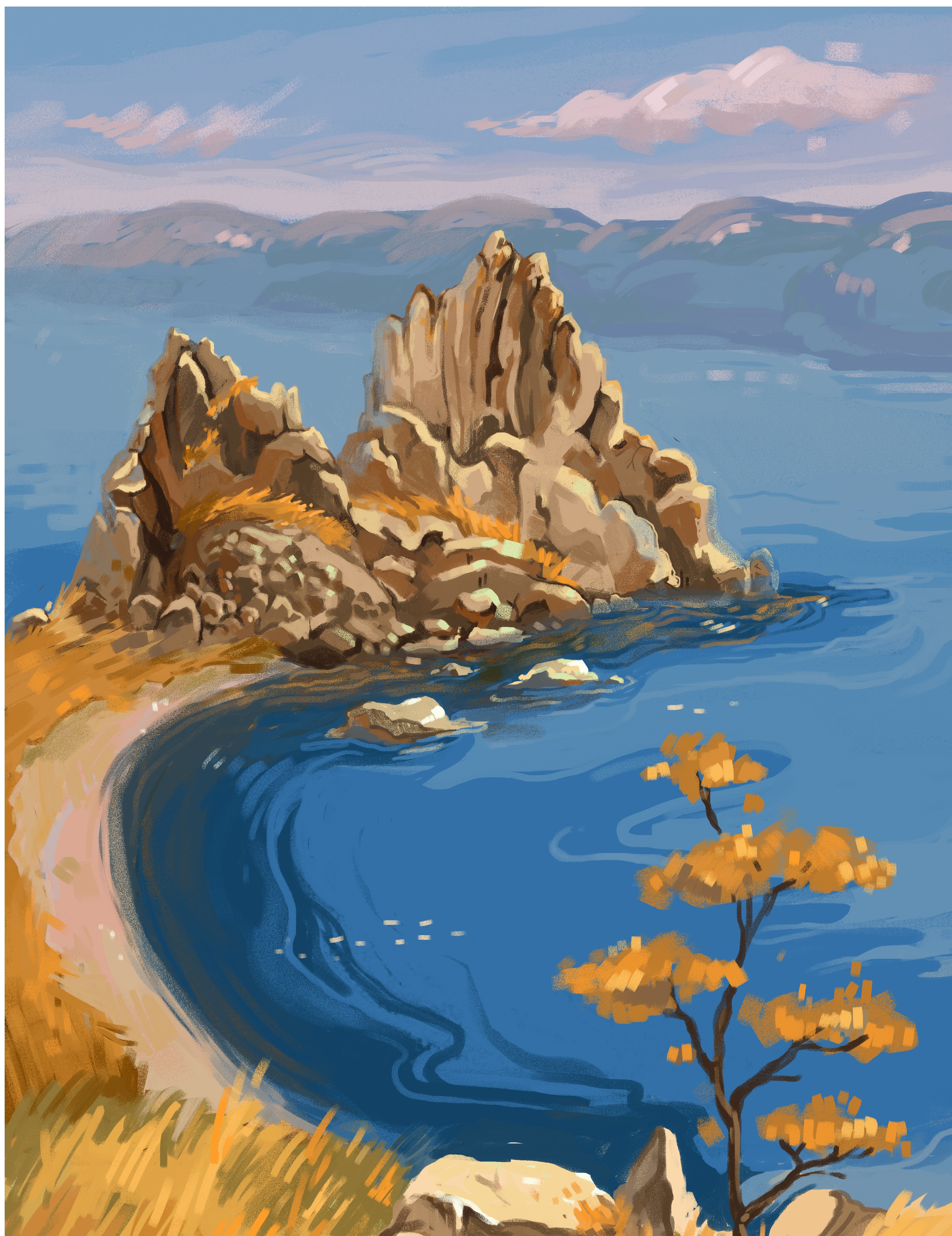Обзорная экскурсия по острову к мысу Бурхан (скала Шаманка) — одной из девяти святынь Азии, священному месту коренных жителей острова — бурят.