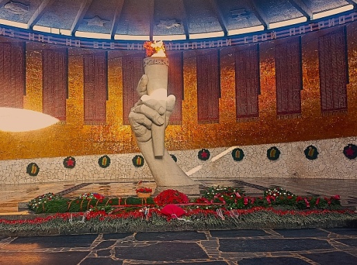 Свободное время на Мамаевом Кургане. Самостоятельное посещение историко-мемориального комплекса “Героям Сталинградской битвы” на Мамаевом Кургане. 200 ступеней – по числу дней и ночей Сталинградской битвы – отделяют вершину кургана от подножия. Здесь безмолвно горит Вечный огонь, освещая своим светом более семи тысяч имён погибших за главную высоту России. Осмотр стен-руин, площади «Стоять на смерть», посещение зала Воинской славы, просмотр смены караула, посещение Храма Всех Святых.