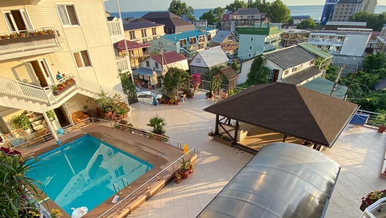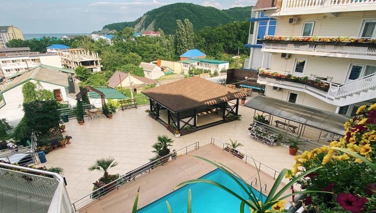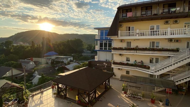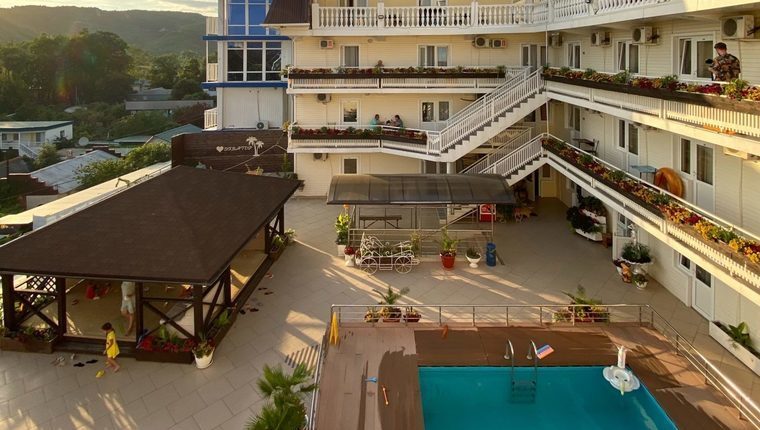 Отель "Экватор" расположен на берегу Черного моря в курортном поселке Лермонтово.