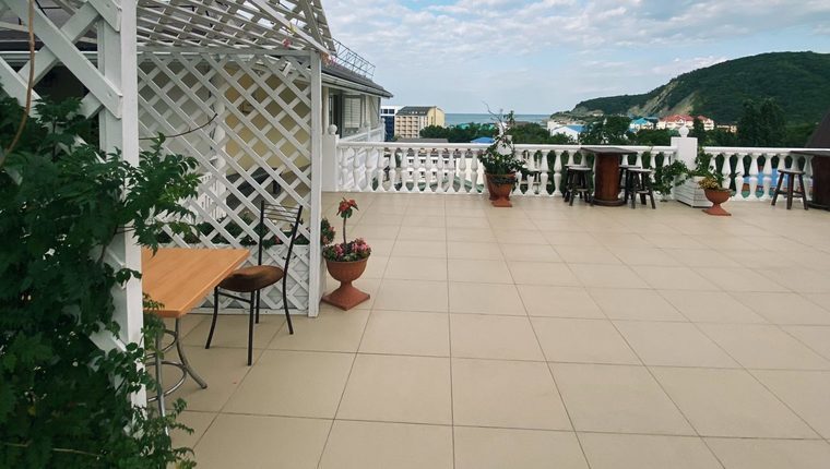 - На территории отеля также расположены беседки и столики с видом на горы и море.