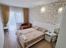 | Мебель, оборудование: | двуспальная и две односпальные кровати или односпальные кровати, шкаф, зеркало, прикроватные тумбочки, холодильник, ТВ, кондиционер. |