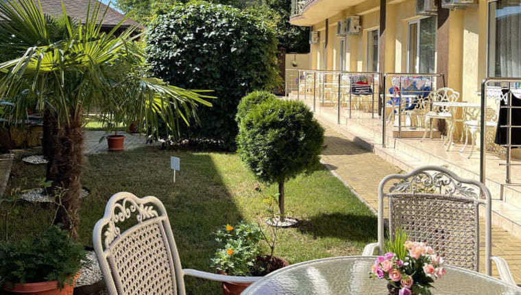 Отель окружает собственная благоустроенная территория с бассейном, садом и просторной террасой, где наши гости могут проводить уютные вечера под открытым небом.