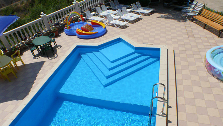 - большой бассейн оригинальной формы с различными уровнями глубин;