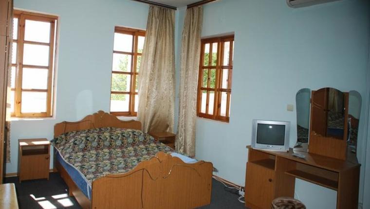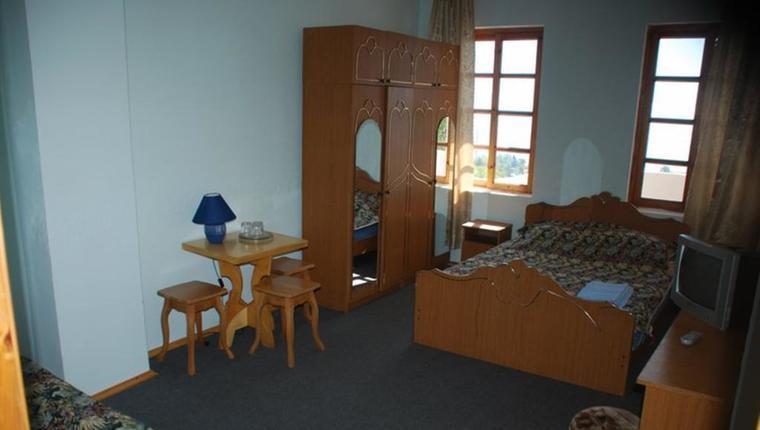 - 3-местный 1-комнатный «Стандарт +». В номере: общий балкон с видом на море, горы. В номере: двуспальная кровать, одна одноместная кровать, прикроватные тумбочки, шкаф для одежды, стол, стулья, зеркало, телевизор, кондиционер, холодильник, мягкие кресла, санузел. Дополнительное место – раскладушка или односпальная кровать!