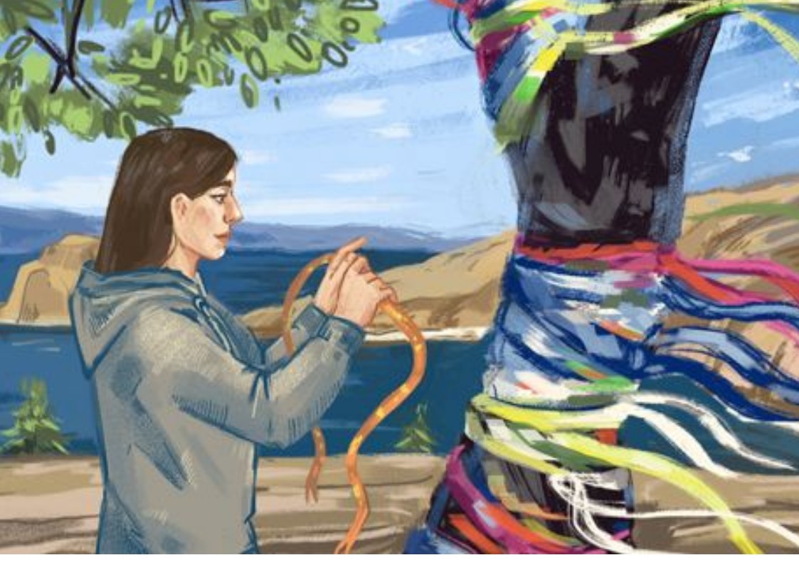 На острове можно увидеть большое количество перевязанных цветными лоскутами деревьев и деревянных истуканов - "сэрге", изображения священного белоголового орла и даже настоящий шаманский обряд!