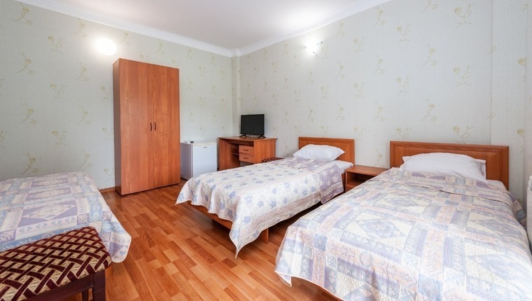 Все номера укомплектованы мебелью, телевизором, холодильником, кондиционером, ванной комнатой с душем, интернет - wi-fi. Подача горячей и холодной воды круглосуточно.