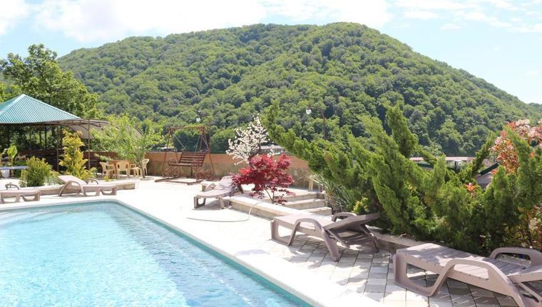 - На территории гостевого дома имеется 11-ти метровый бассейн с подогревом (ширина 3.75), из современных керамо-композитных материалов обеспечивающий безопасный вход, максимальную зону для плавания, глубиной, начиная от 1,20 м, плавно переходящий в 1,85 м. Такие параметры дают возможность комфортного купания и для детей и взрослых. Удобные поручни по всему периметру делают пребывание в воде безопасным и комфортным, что в свою очередь дает возможность заниматься аэробикой. Место отдыха возле бассейна укомплектовано шезлонгами. Подогрев бассейна обеспечивает комфортное купание в мае и сентябре. Для пользования бассейном необходимо иметь сменную обувь, шапочку для купания, купальник, плавки. Нахождение детей в бассейне возможно только в присутствии взрослых.