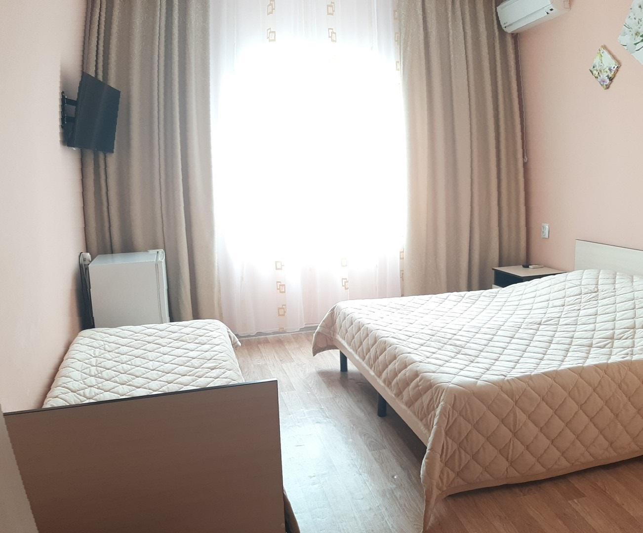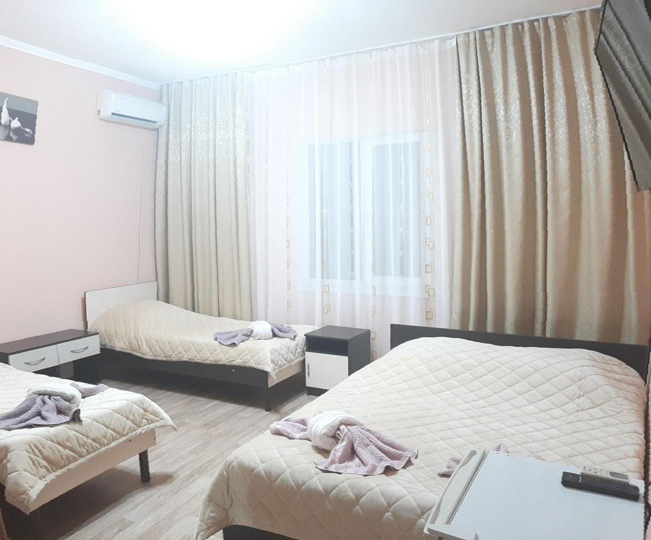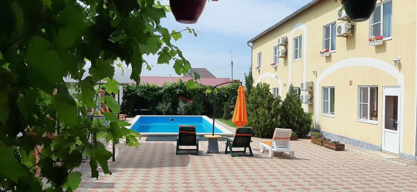 Гостевой дом является полностью благоустроенным комплексом из 2-х зданий с уютными современными номерами и бассейном. Он расположен в верхней части станицы Голубицкой, 900 метров от Центрального пляжа и грязевого лечебного озера, где Вы найдете все самые любимые пляжные развлечения, чистый пляж, золотой песок, теплое море, кафе и клубы станицы. На территории: - открытый бассейн 5*10 м (работает с 10 июня по 31 августа) - шезлонги, зонты - игровая площадка - большая беседка