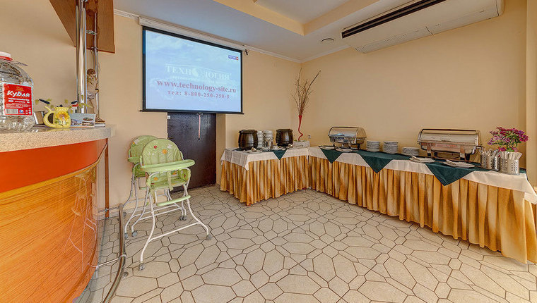 - детский комплект (по заявке) – кроватка-манеж, прогулочная коляска, детский горшок, клеенка для сна, в обеденном зале детский стул.