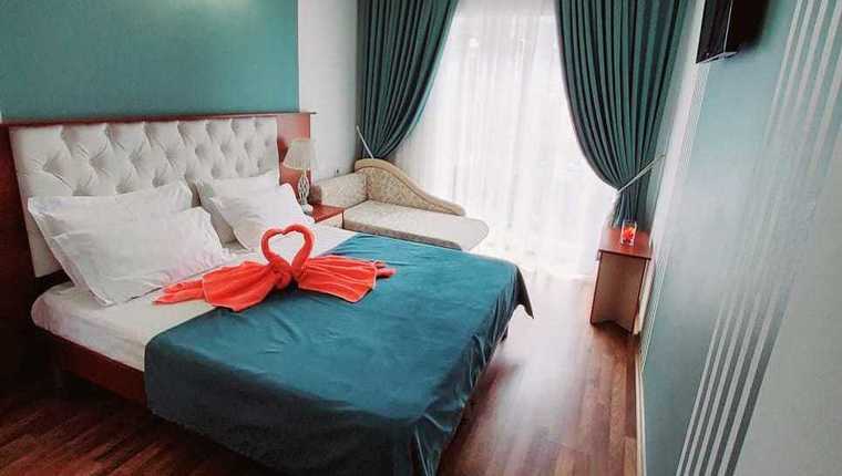 - В каждом номере предусмотрен собственный санузел, где для гостей подготовлены косметические наборы, в комнатах есть кондиционеры и техника: холодильник, телевизор, утюг, шкаф.