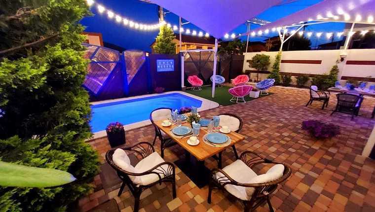 Для гостей есть открытый купальный бассейн с подогревом и подсветкой.