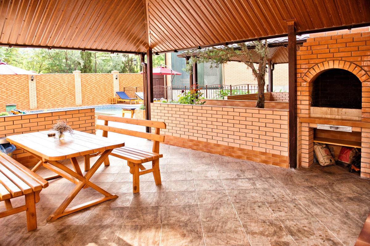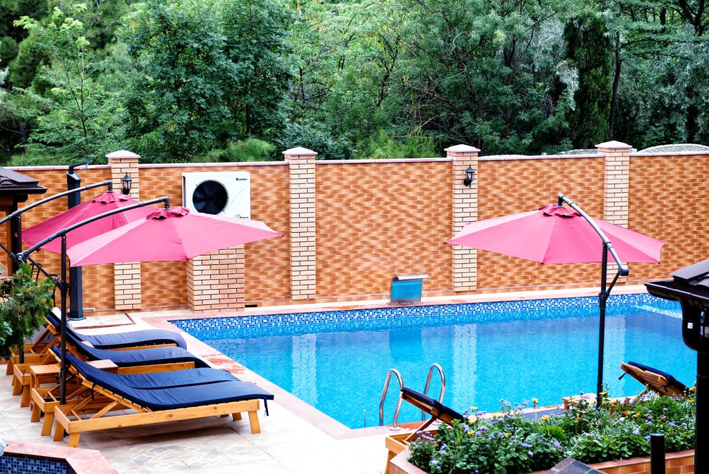 На территории отеля Вас ждет бассейн с подогревом в холодное время года (открыт с 1 мая по 30 сентября) и детским отделением, две большие террасы с каменными мангалами и принадлежностями для барбекю, бар, шезлонги у бассейна и детская площадка.