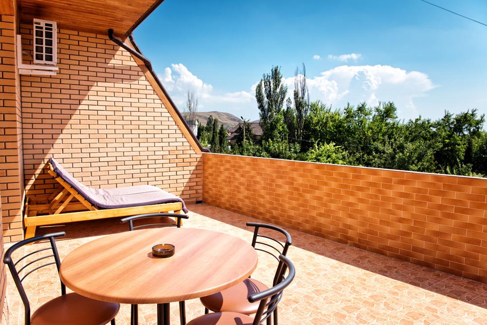 | Мебель, оборудование: | двуспальная и односпальная кровати/ 3 односпальные кровати, шкаф, прикроватные тумбочки, холодильник, ТВ, кондиционер, мини-кухня, большой балкон-террасса. |