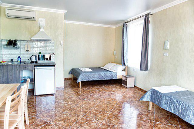 | Мебель, оборудование: | двуспальная и 2 раздельные кровати, шкаф, прикроватные тумбочки, холодильник, ТВ, кондиционер, мини-кухня. |