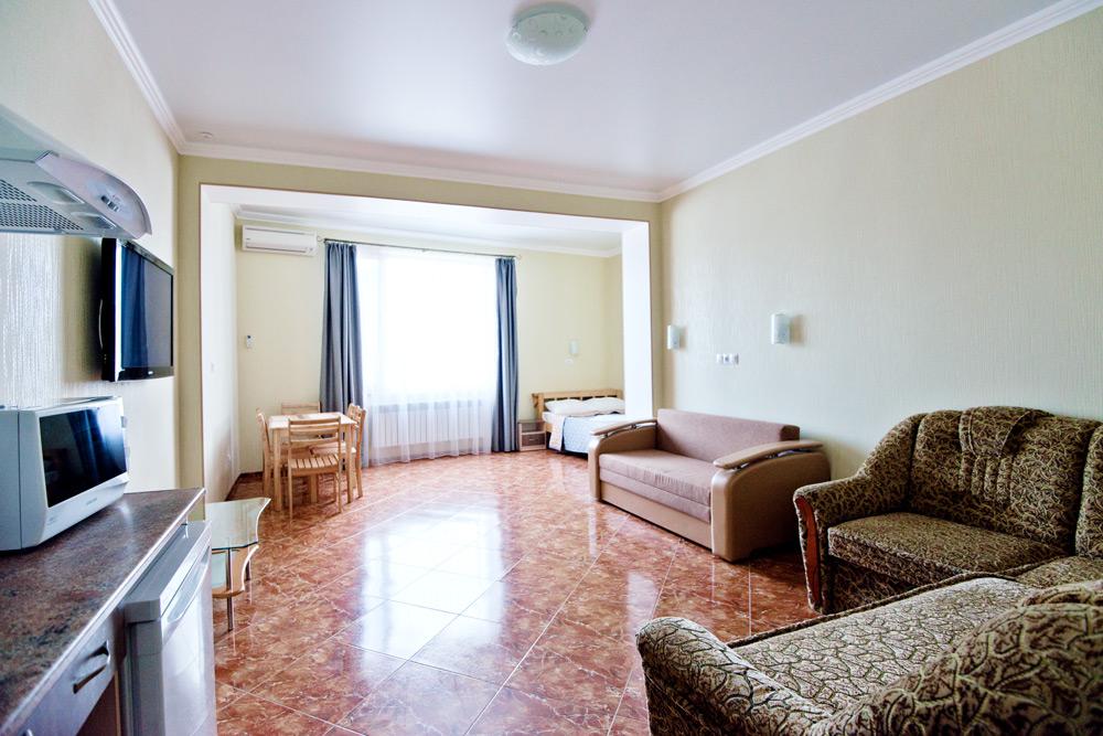 | Мебель, оборудование: | двуспальнаякровать, 2 дивана, шкаф, прикроватные тумбочки, холодильник, ТВ, кондиционер, мини-кухня. |
