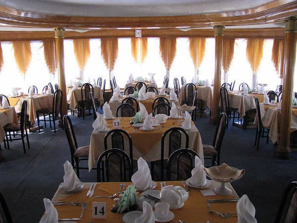 ежедневное трехразовое, исключая день начала и день окончания тура. В день посадки - высадки питание предоставляется в зависимости от времени отправления - прибытия и программы круиза. В рейсах продолжительностью менее 5 дней питание организовано на основании заранее утвержденного меню. В более продолжительных рейсах питание организовано по методу предварительного заказа, выбор блюд со 2-ого дня круиза. В первый день круиза заказ блюд не осуществляется. Меню вывешивается ежедневно в салонах ресторана теплохода. Завтрак, обед, ужин - заказная система питания, В ресторанах фиксированная рассадка. В зависимости от загрузки возможно две смены питания. Спиртные напитки, соки, воды и иная продукция баров и ресторанов, не входящая в стоимость тура,оплачивается дополнительно. В случае, если время проведения экскурсии совпадает со временем приема пищи, туристу выдается «сухой паек».