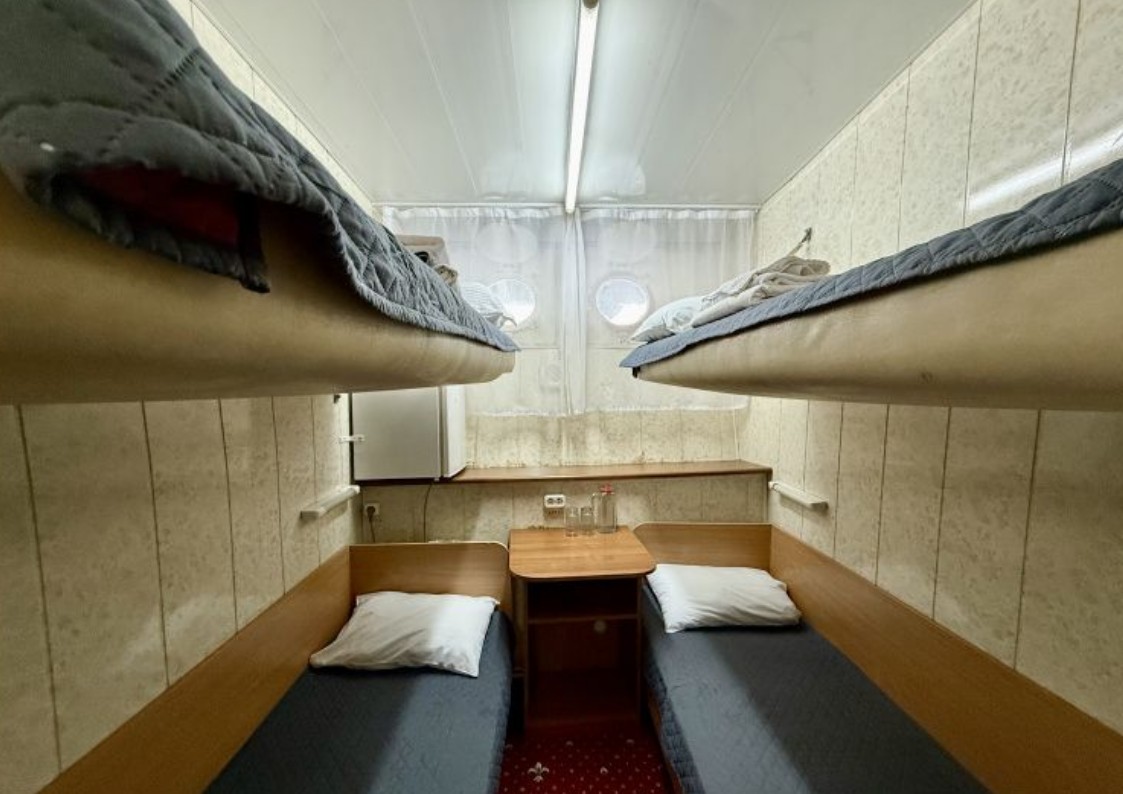 К вашим услугам: 2-х, 3-х и 4-х местные каюты с удобствам,