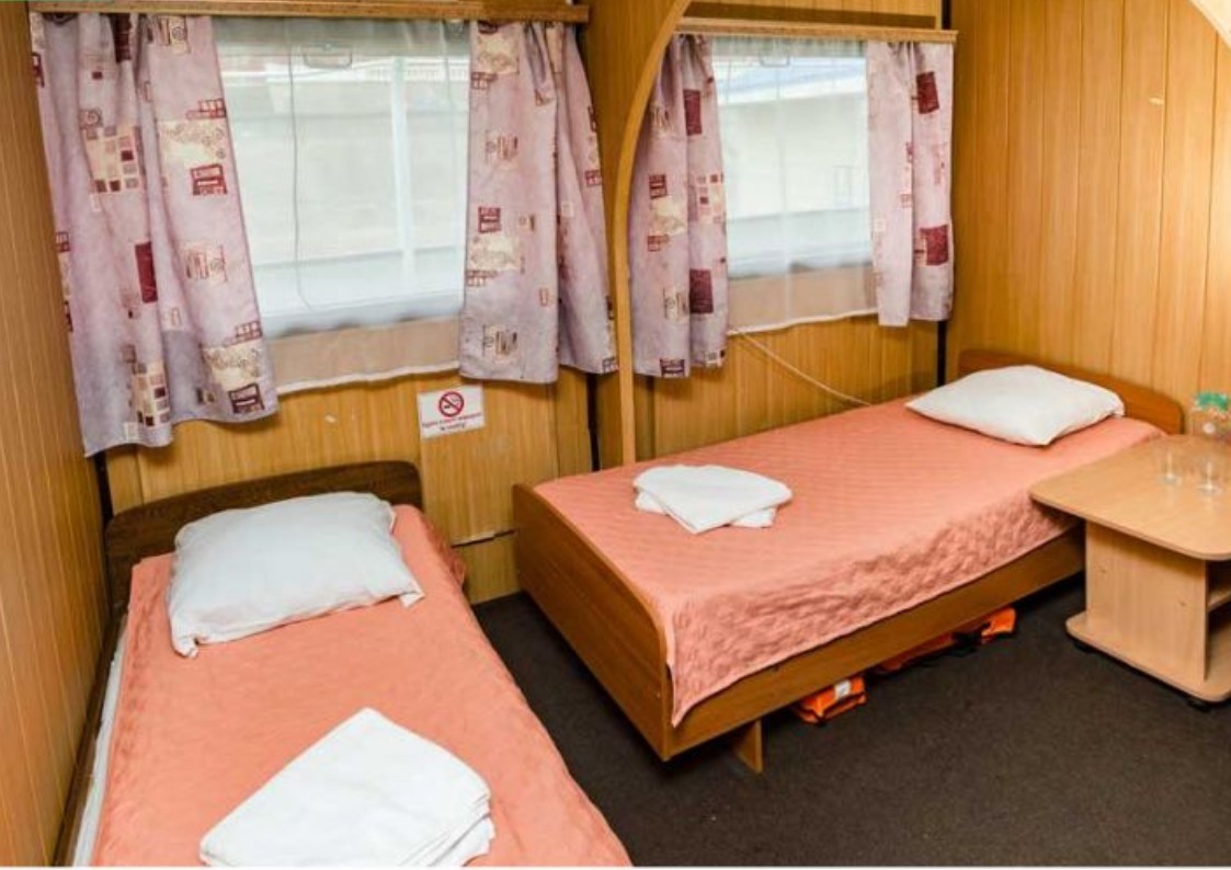 К вашим услугам: 2-х, 3-х и 4-х местные каюты с удобствам,