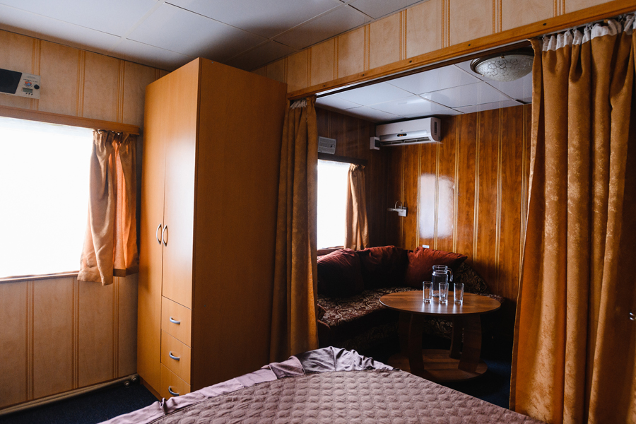 К вашим услугам: каюты категории «Полулюкс» и «Люкс» , 2-х и 3-х местные каюты с удобствами на средней палубе, каюты экономкласса на главной и нижней палубе.