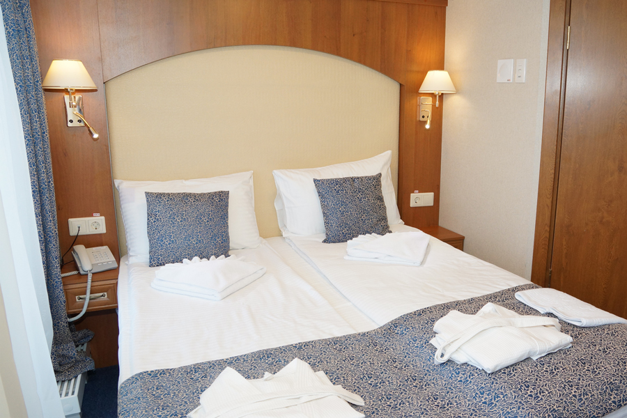 - Все каюты оснащены: душем/туалетом, мини-баром, сейфом, телевизором и кондиционером