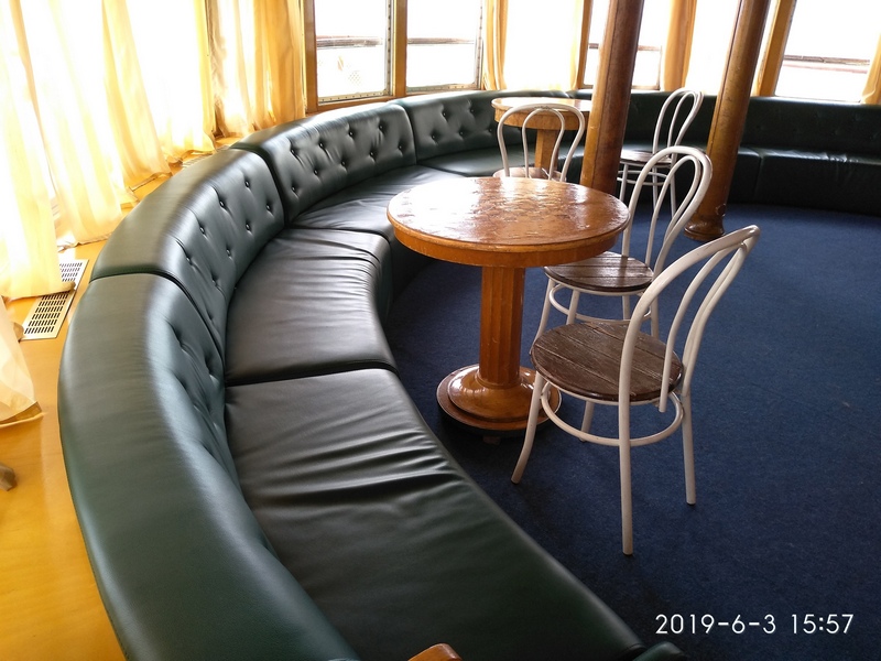 На теплоходе имеются два ресторана на шлюпочной и главной палубах, киноконцертный зал, мызыкальный и видео салон, бар, солярий на шлюпочной палубе, гладильная комната, медицинский пункт.