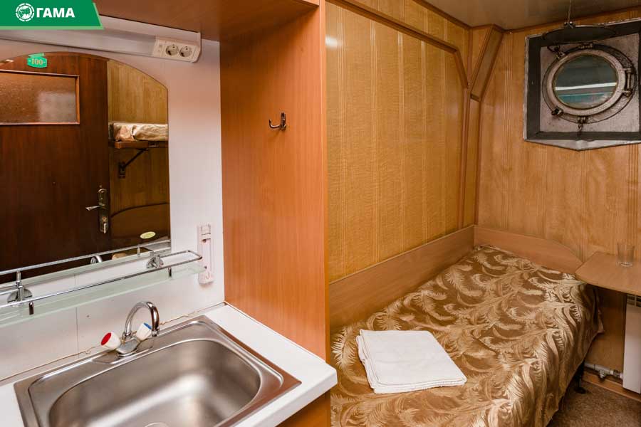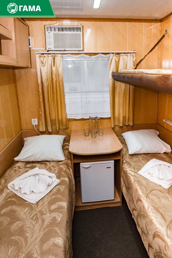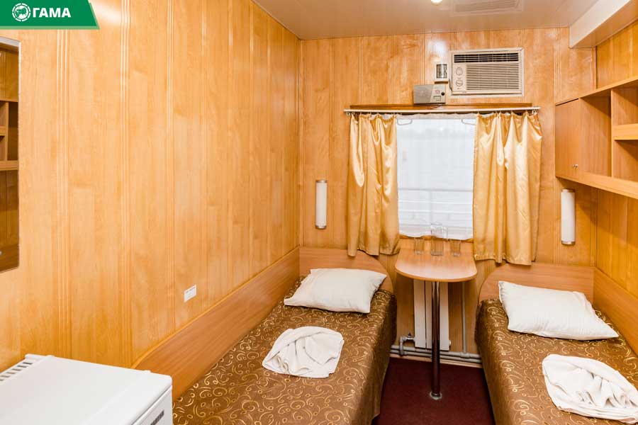 К вашим услугам: каюты категории «Полулюкс«» и «Люкс», 2-х и 3-х местные каюты с удобствами на средней палубе, каюты экономкласса на главной и нижней палубе.