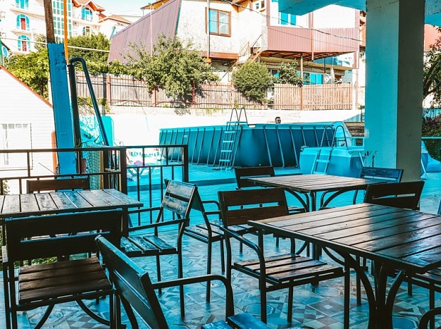 На втором этаже гостевого дома работает гастропаб, где отдыхающие могут заказать завтраки или выбрать блюдо по меню. Гостям доступны услуги прачечной и беспроводной интернет. В 550 метрах находится галечный оборудованный пляж. На пляже установлены раздевалки, есть навесы и лежаки.