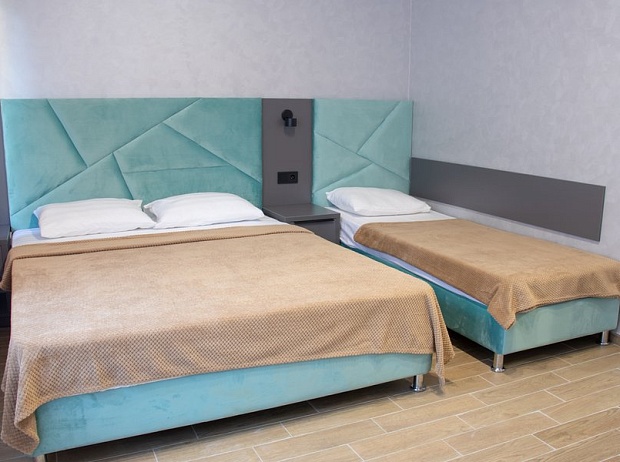 Корпус гостевого дома разместился в зеленом, окруженном вечнозелеными растениями, квартале. Жилой фонд, в общей сложности, рассчитанный на 130 человек, предлагает гостям однокомнатные номера Стандарт и двухкомнатные Семейные. В каждом номере есть отдельный санузел, кондиционер, телевизор, холодильник.
