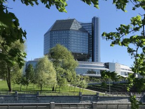 Гостиница Беларусь*** с аквапарком, Минск, ул. Сторожовская 15, 22 этажа, 800 мест. Гостиница открыта после реконструкции в мае 2014 года. Изюминкой гостиницы является панорамный лифт и аквапарк (бассейн с саунами, джакузи, горкой и водопадами). Гостиница расположена в удобном и самом красивом месте в центре Минска, от нее открывается величественный вид на набережную реки, старинное Троицкое предместье. Гостиница имеет удобную транспортную и пешеходную связь (20 минут пешком или 5 минут пешком + 5 минут на автобусе) с главной улицей города — проспектом Независимости, самыми большими универмагами города — ГУМом и "Торговым домом на Немиге" с секциями известных белорусских брендов. Во всех номерах кондиционеры, телевизоры, холодильники, телефоны, оборудованные ванные комнаты с косметическими принадлежностями, кондиционеры (в номерах ДАБЛ нет кондиционеров); фен бесплатно у горничных на этаже. Номера ТВИН имеют 2 кровати шириной 90 см. Номера ДАБЛ имеют 1 двуспальную кровать шириной 140 см. Номера СЕМЕЙНЫЕ имеют гостиную с диваном и две спальни: в одной двуспальная кровать, во второй 2 кровати. Номера ЛЮКС имеют 2 комнаты: спальню с двуспальной кроватью и гостиную с раскладным диваном. Завтраки шведский стол. См. также сайт гостиницы.