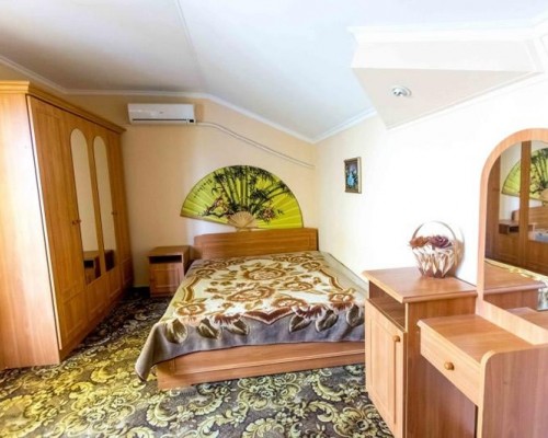 Размещение: Двухэтажное здание: – 2-х местный номер с удобствами. В номере: одна двуспальная кровать, телевизор, холодильник, кондиционер, туалет, умывальник, душ. – 2-х местный номер эконом с удобствами на этаже. В номере: одна двуспальная или две раздельные кровати, вентилятор. Санитарный блок в отдельно стоящем здании. На всей территории гостиницы - бесплатный Wi-Fi.