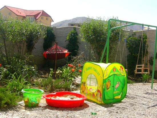 Территория "Виллы Ямайка" в Судаке наполнена цветущими растениями, фруктовыми деревьями. Также для любителей мясных блюд имеется зона барбекю, гамак. А для детей предусмотрена специальная площадка со всеми игрушками.