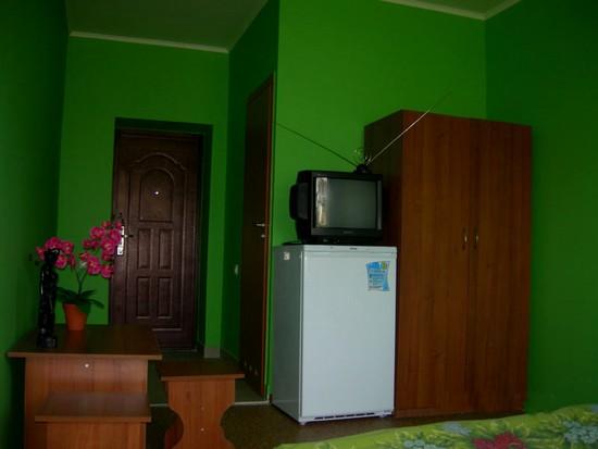 Одна двуспальная или две односпальные кровати,доп.место-еврораскладушка или кресло-кровать,TV, холодильник, сплит-система. |