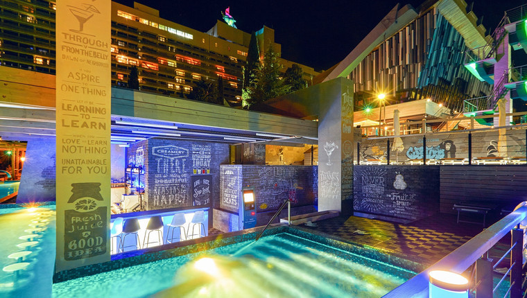 - Крупнейший в Крыму бассейн с подогреваемой морской водой, аквапарк, детский бассейн с водными аттракционами, бассейны для прыжков в воду и панорамный с баром.