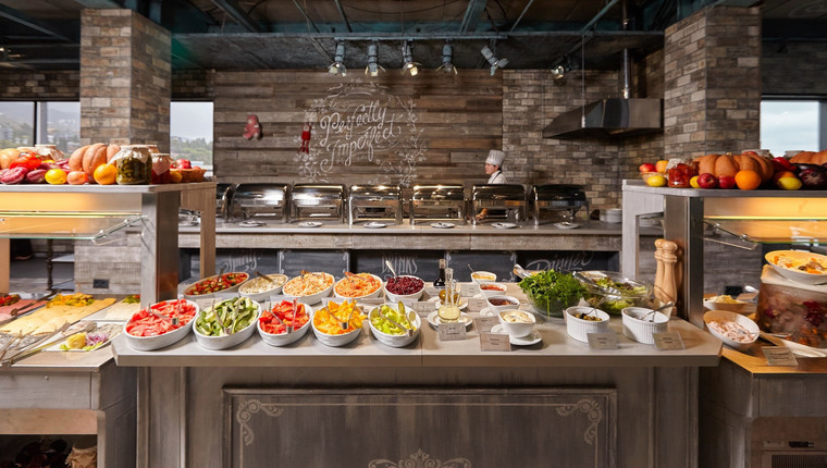 Вас ждет настоящее гастрономическое изобилие в формате «Шведский стол». Классические закуски, салаты, супы, горячее и десерты, тематическое меню разных стран мира, Крымская кухня и местные деликатесы, блюда для детей и безлимитные прохладительные напитки.